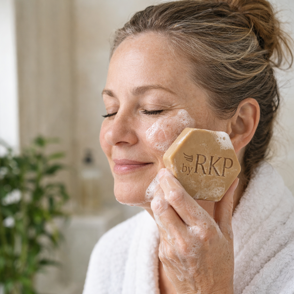 Begin with a gentle cleanse that lifts away overnight sweat and oils—without compromising your skin barrier. Use the Rebuild Dry Skin Soap Bar or Rebuild Sensitive Skin Soap Bar to softly purify and prepare your skin, creating the perfect foundation for nourishment that follows.