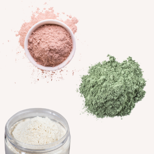 Clays in skincare refer to natural mineral-rich substances that are used in various skincare products for their cleansing, exfoliating, and detoxifying properties. Examples of great clays are: bentonite, french green clay, morrocan rhassoul clay, pink clay and fuller’s earth.