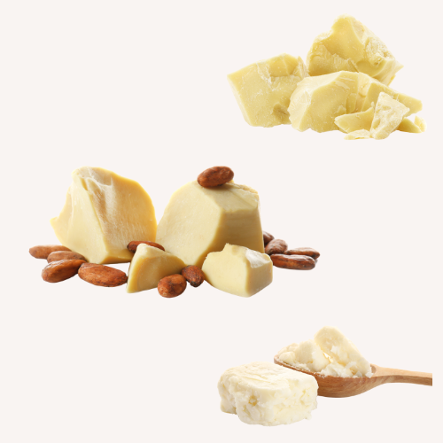 Butters in skincare refer to natural fats derived from various plant sources that are used to moisturize, nourish, and protect the skin. These butters are rich in fatty acids, vitamins, and other nutrients that help maintain skin health and hydration. Some common types of butters used in skincare include: cacao butter, kokum butter, mango butter and shea butter.